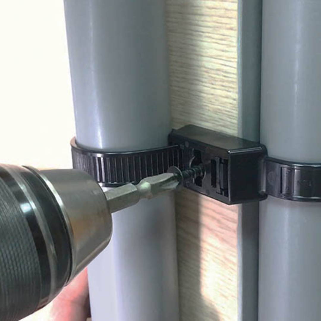 Designed with a double head construction, this mounting tie allows wires, tubing, or hoses to be secured parallel and neatly separated, helping to improve organisation and reduce wear or tangling.