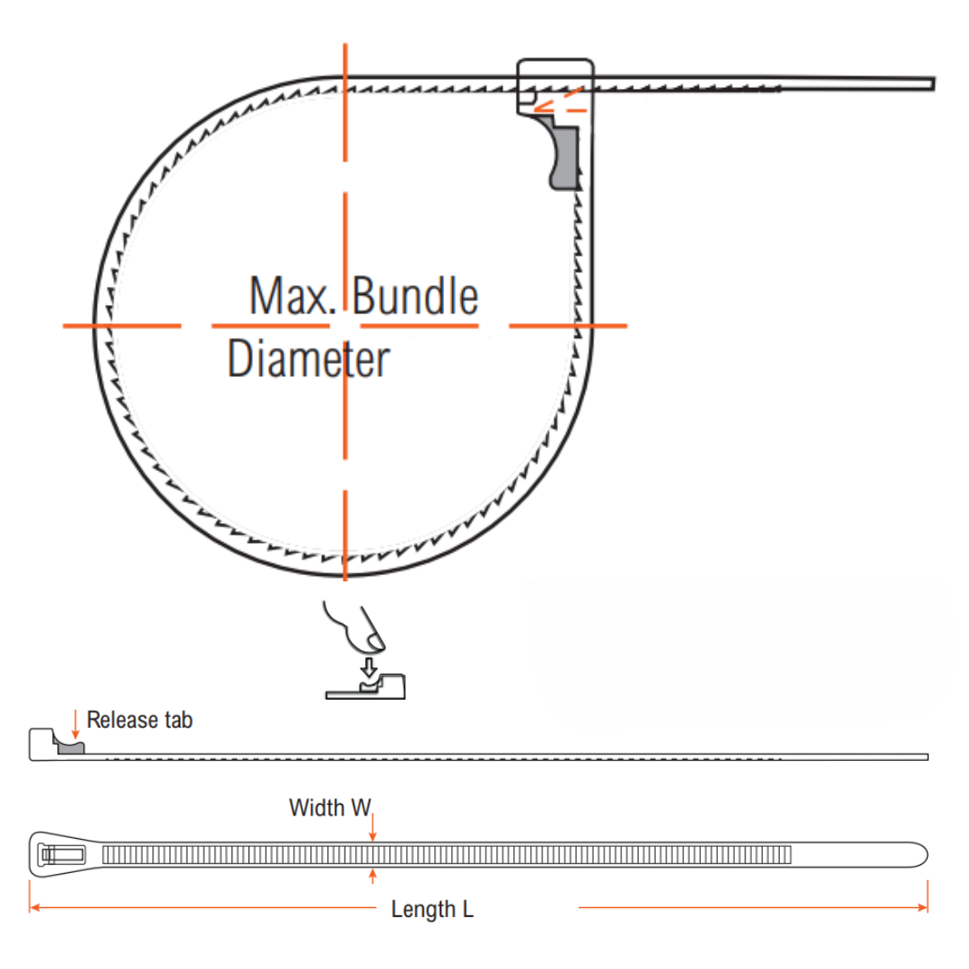 The easy to release clip allows you to reopen these cable ties to either reuse over and over again, or reopen to allow new wires to be added to an existing bundle.