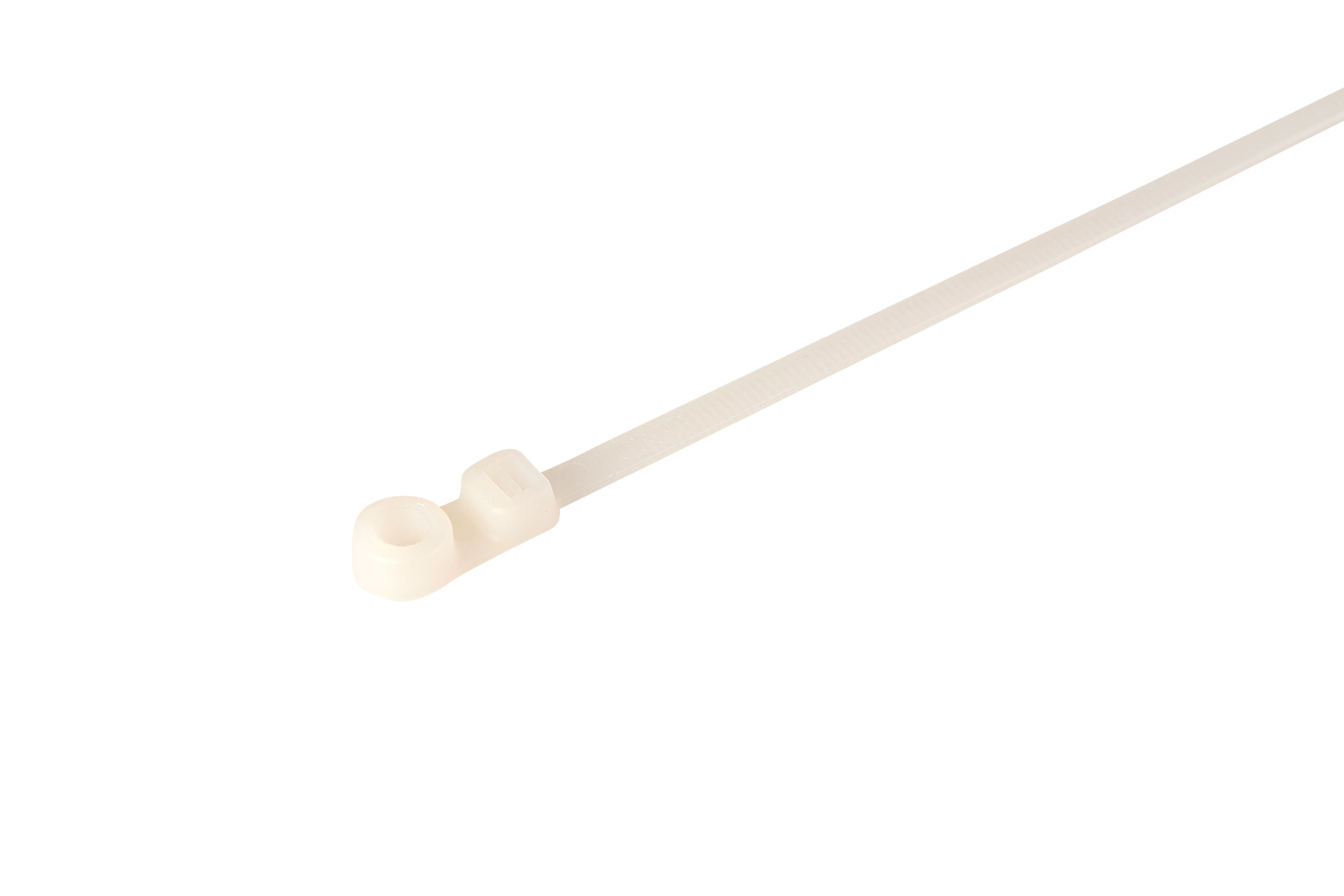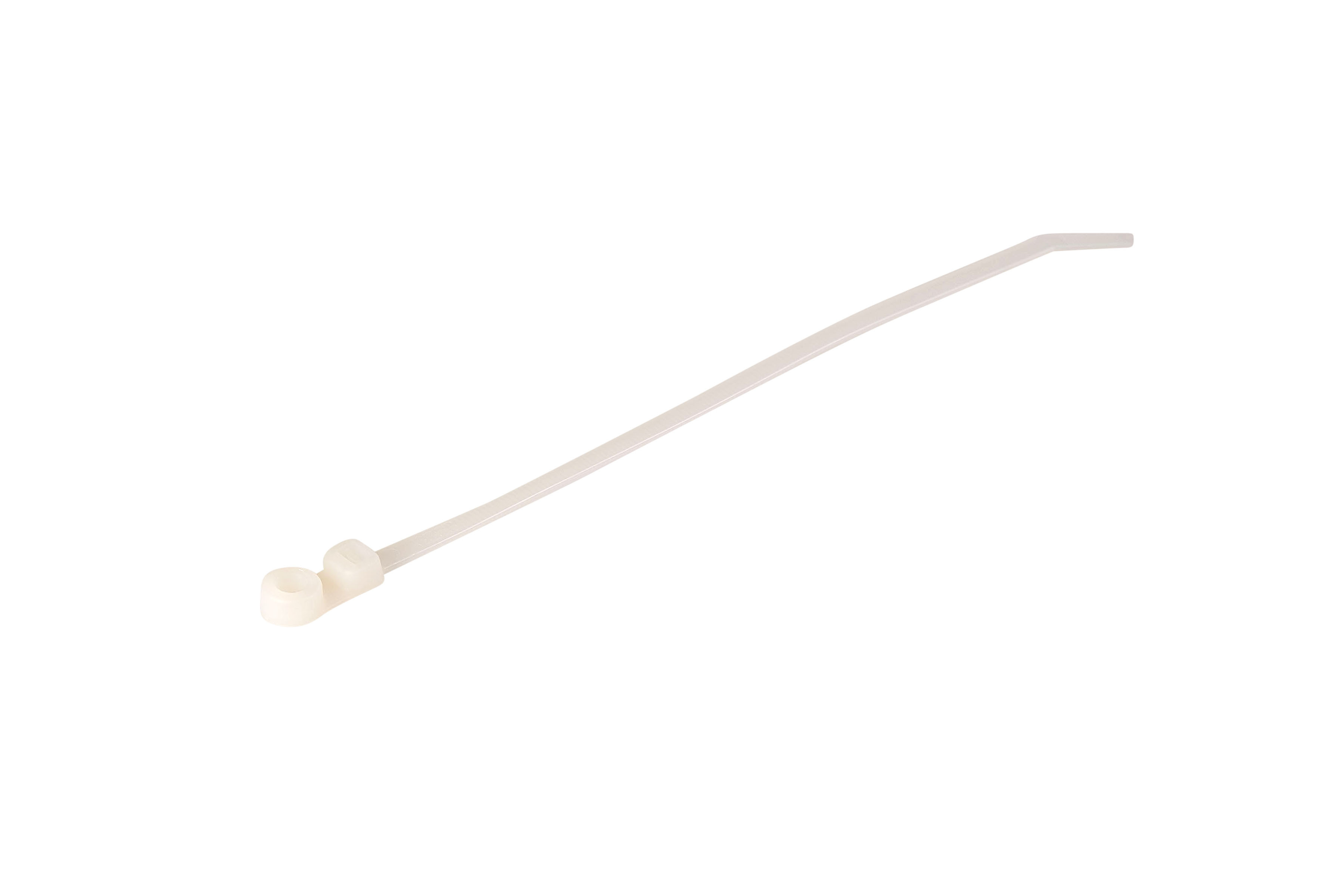 The cable tie can be secured to a panel using a single screw.